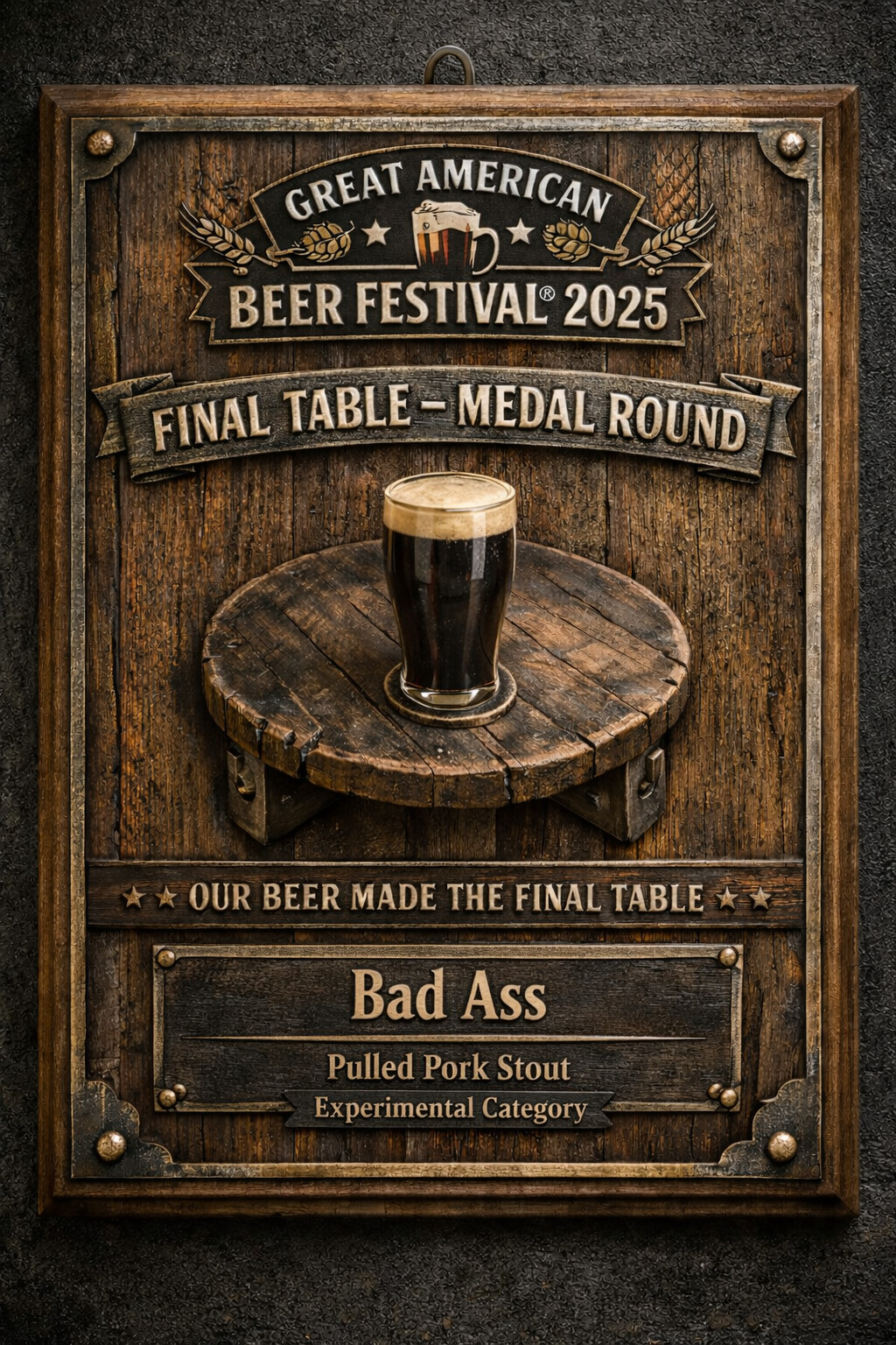 Final Table - Medal Round, Experimental Category - "Bad Ass Pulled Pork Stout" (Collaboration with Monolith Brewing Company)